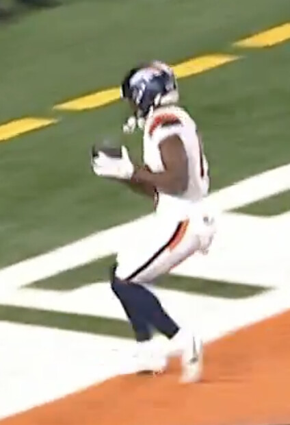 I’m still not 100% Mims got both feet down. He was bobbling the ball a bit. They never really showed a replay and there was apparently no review by the booth.