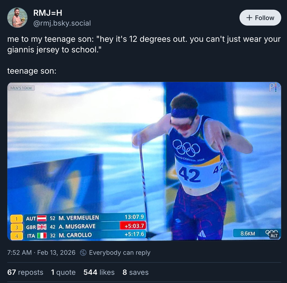 This is my issue, that I’m perpetually a little behind, so it’s tough to participate in any real-time discussions. I’m trying to speed watch almost every event. Some, like the sliding events, seem mostly decided by run 4, so I’ll just watch a couple leaders and spend 5 minutes on it.