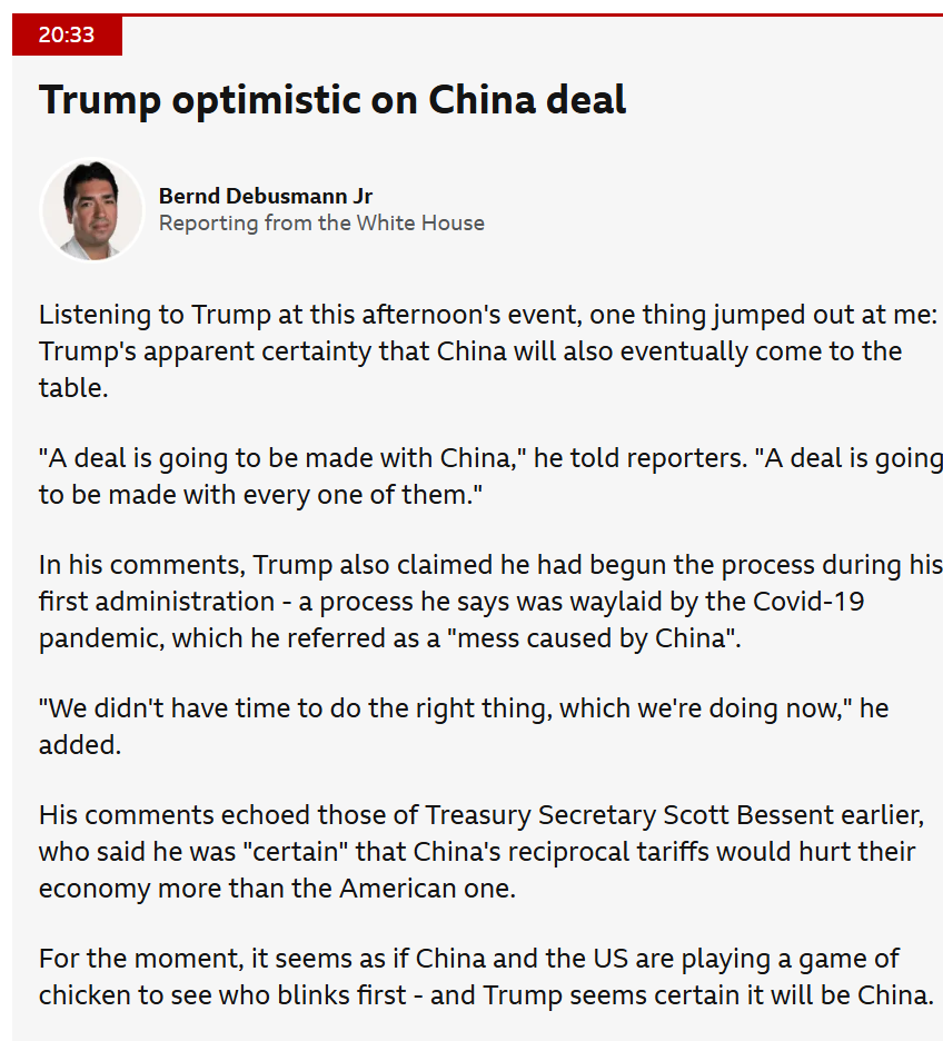 which is obviously why i call off the tariffs, cause my ass is kissed soooooooo much (US bonds taking a large dive, dollar next)