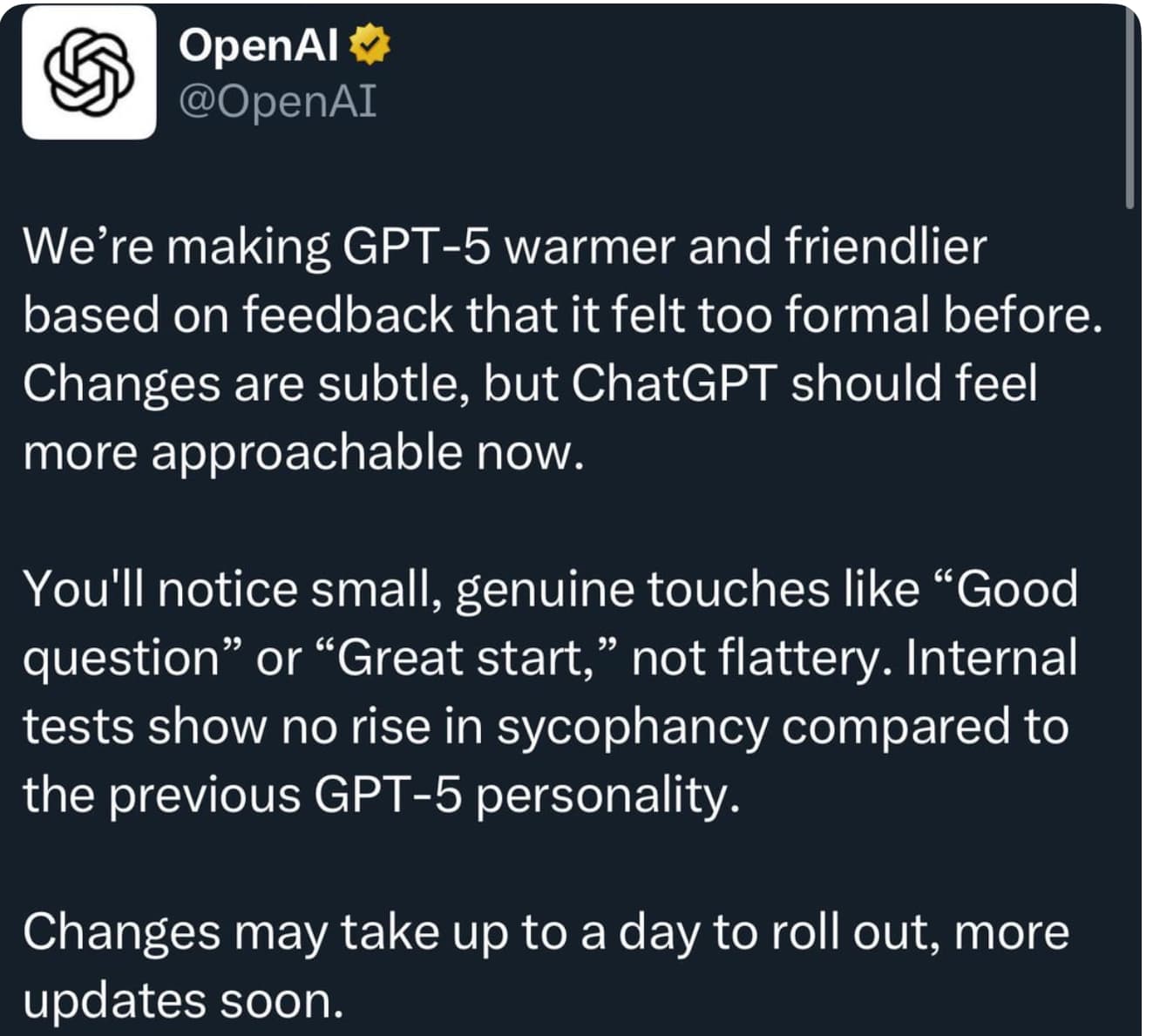 Anyway it’s a long tangent but in my experience what most people see as creativity is just taking an idea that hasn’t spread to an area yet or taking a new idea and combining it with another new or an old idea in a different way that leverages well understood principles. Basically incremental and evolutionary invention and I think AI can do that as well or better than a really big chunk or the population today. And an expert using AI to do grunt work and to validate their own work can be way more productive and output higher quality than experts who don’t.