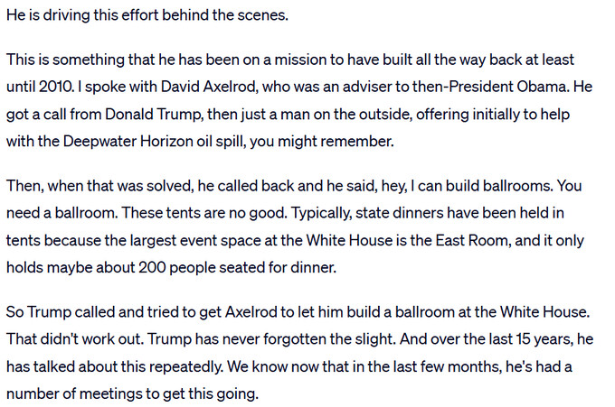 Initially claimed that no demolition was necessary to build the ballroom, there goes part of the East Wing.