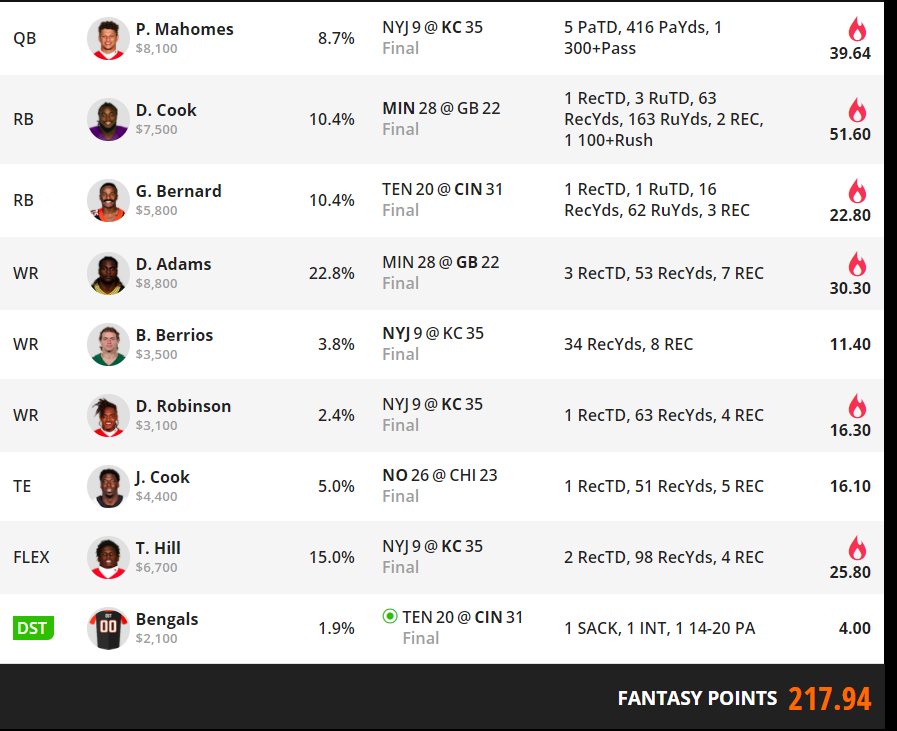Can’t this game just fucking end lol? I liked Kamara and ARob a ton today but obv couldn’t fit them with Dalvin and KC.