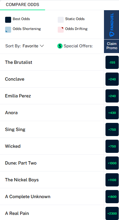 Here’s how Fanduel has the Oscar BP odds looking now.