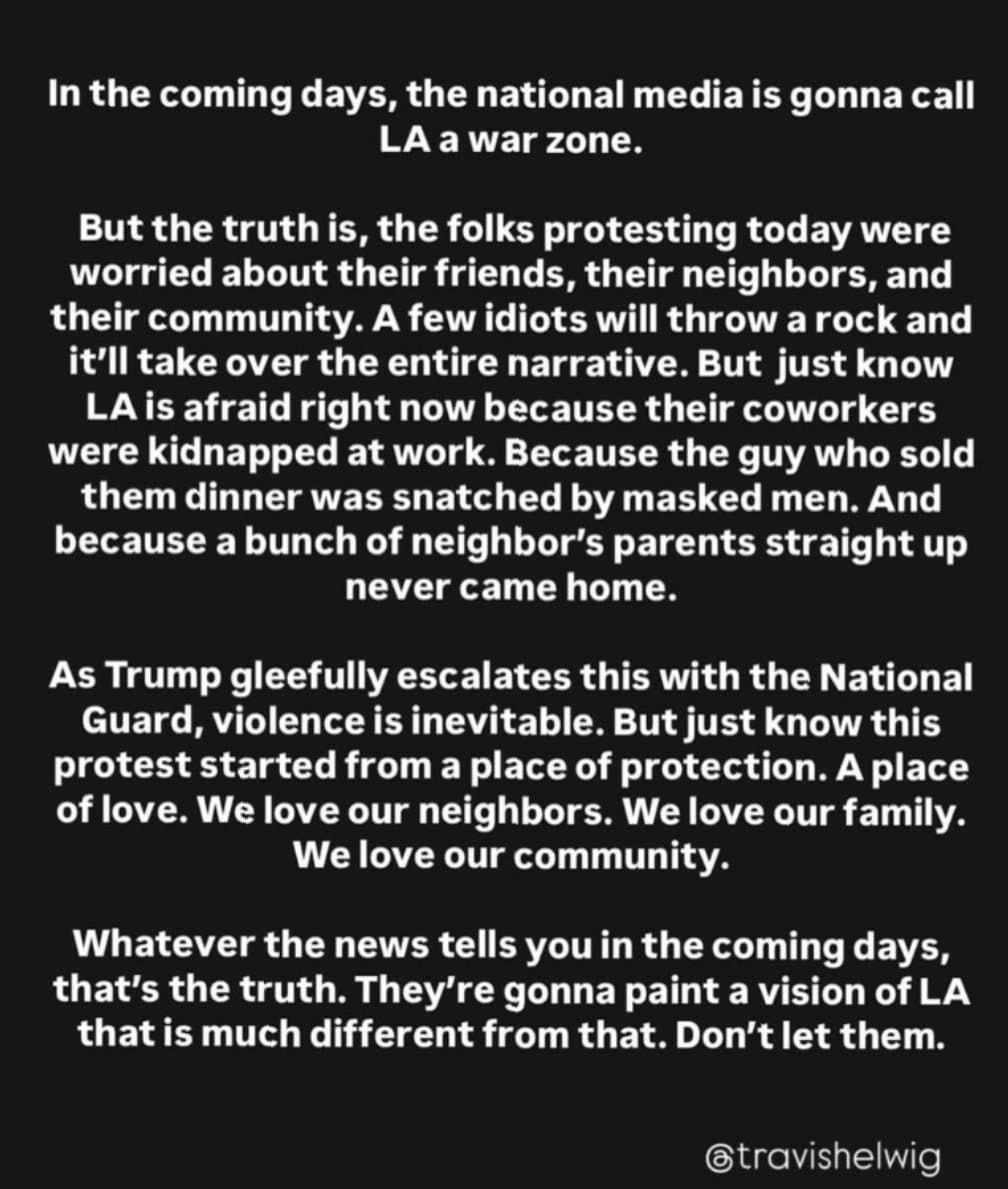 I think it helps that the main beef right now is with ICE, not LAPD or CHP. Of course that could change if some protesters get killed.